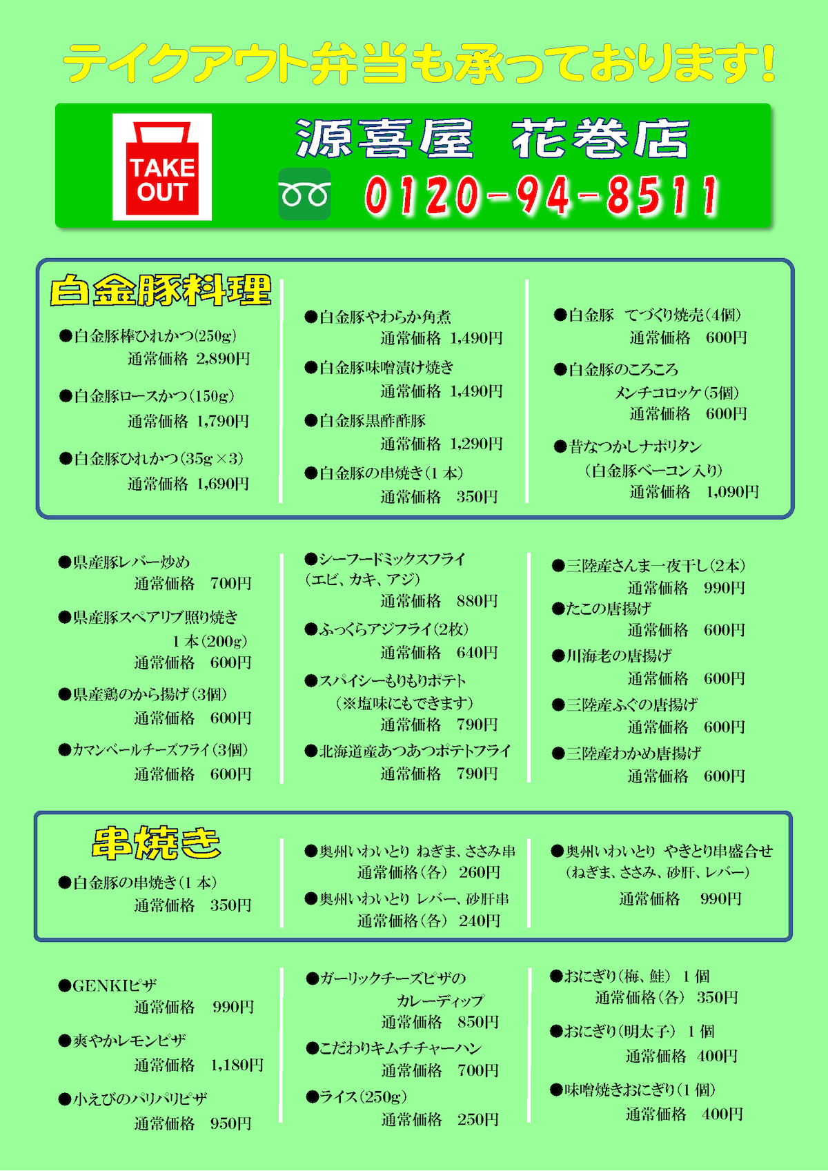 テイクアウトメニュー