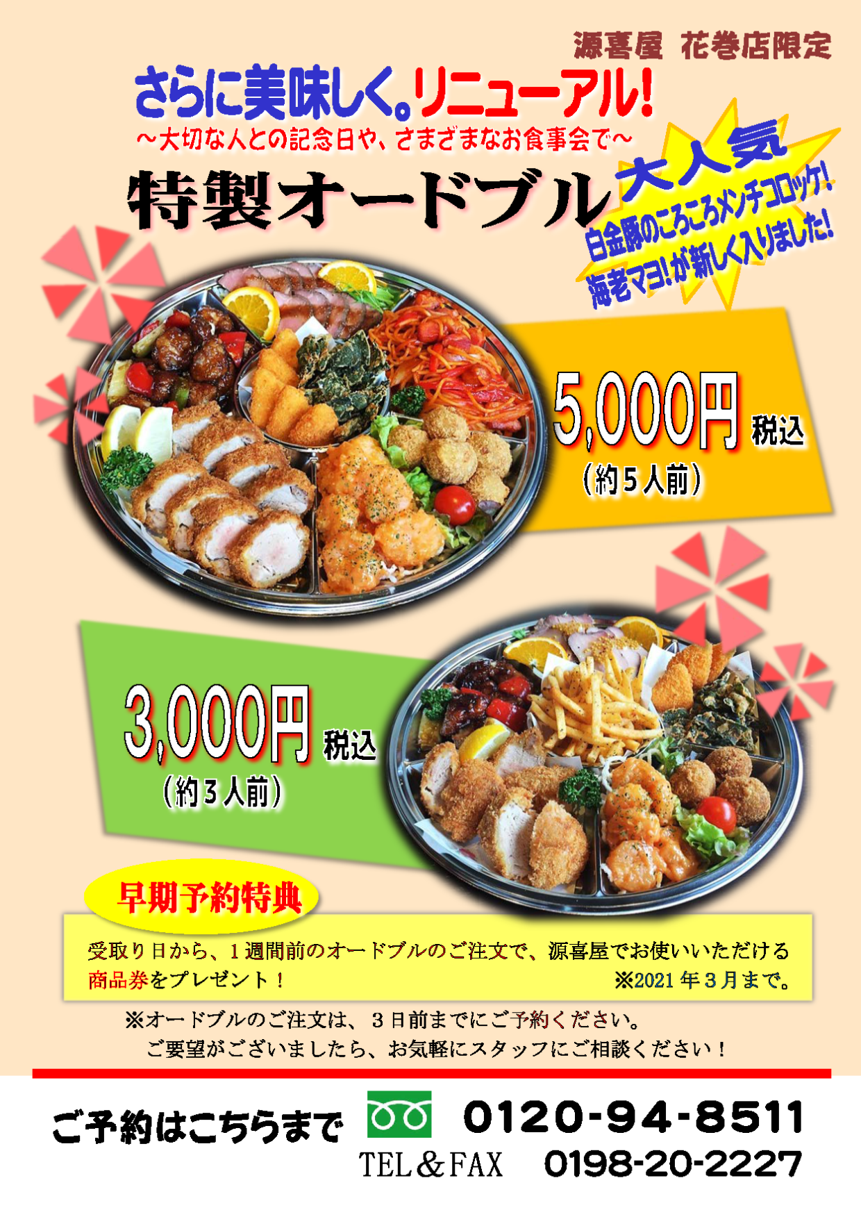 大好評『特製オードブル(花巻店限定)』をリニューアル致します。