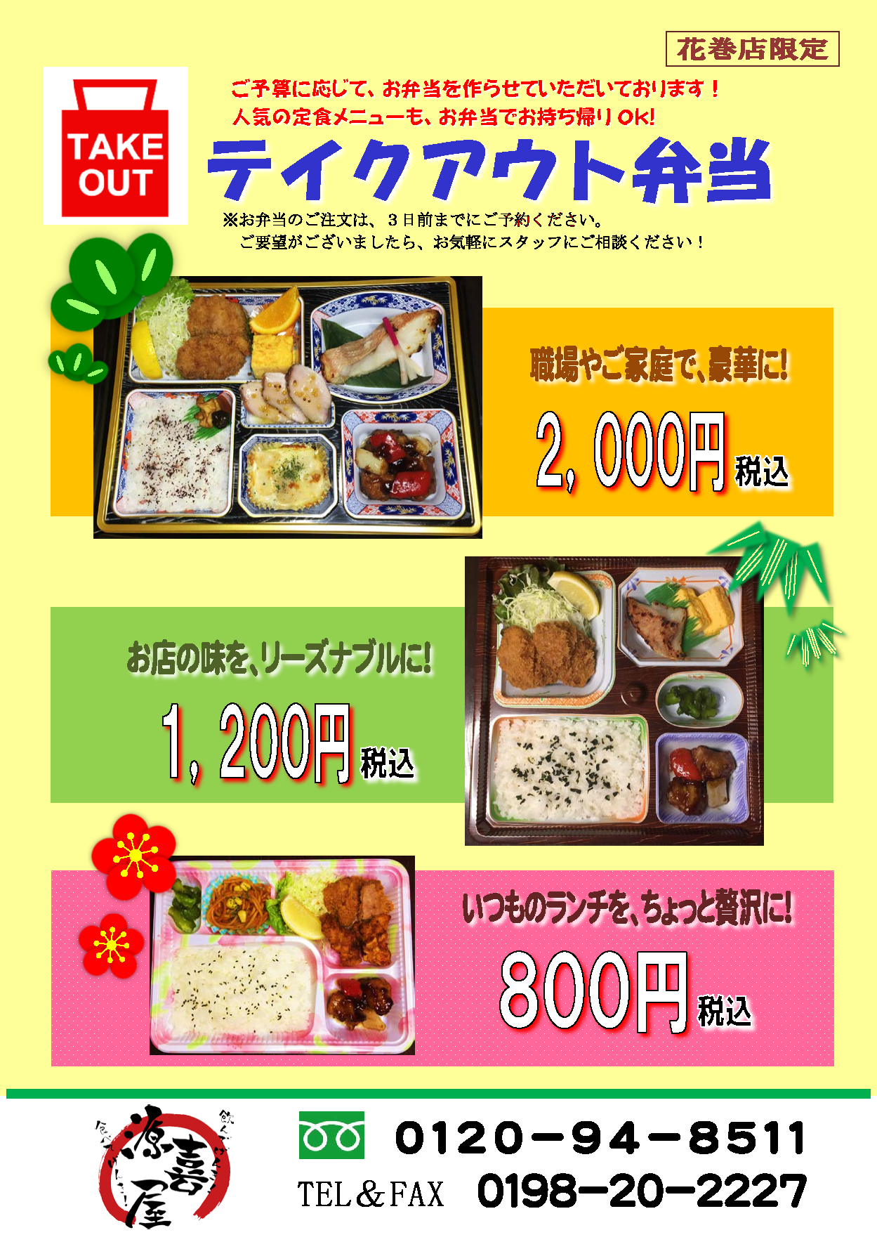 なにかとイベントの多いこの季節にぴったりの源喜屋花巻店テイクアウト弁当のお知らせです。