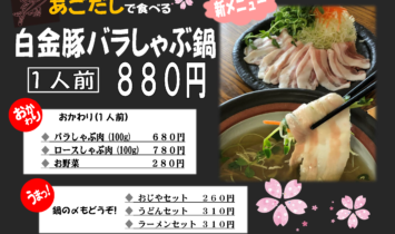【花巻店限定】あごだしで食べる白金豚バラしゃぶ鍋のご案内